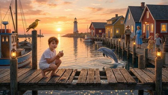 Ao cair da tarde, o porto de Vela Serena acendia suas lanternas como se fossem constelações descidas ao nível do mar. As tábuas do cais contavam histórias em cada rangido, e as ondas, em sussurros de sal, traziam memórias de encontros e despedidas...