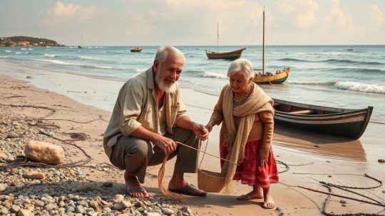 Na vila de Santa Marina, onde o sal do vento se mistura ao incenso antigo da pequena igreja. Tomé, pescador de mãos calejadas, vivia a contar o que lhe faltava: o peixe escasso, a rede gasta, o preço injusto. Dona Beatriz, viúva de passos leves...