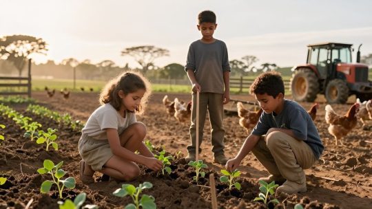 Na fazenda, o dia começa antes do sol aceitar nascer por completo. O galo canta duas vezes, o vento baixa das mangueiras como quem sopra poeira dos pensamentos, e os passos dos animais riscam no chão trilhas antigas. Ali, entre cercas de arame e a...