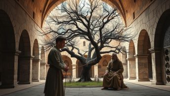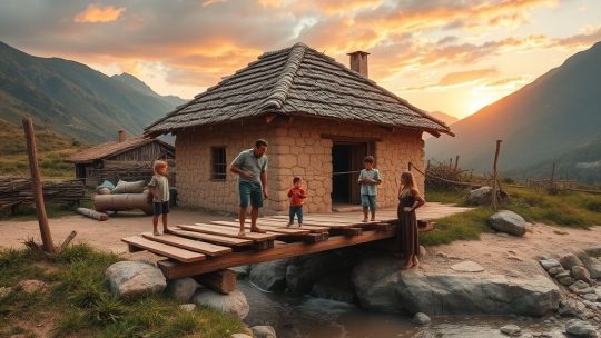Havia uma pequena vila rural, guardada por montanhas antigas e rios prateados. Lá vivia o Velho Estevão, um ancião cuja palavra serenava corações. Numa casa simples moravam Tomás, Marta e seus três filhos — Lina, Bento e Miguel —, gente de fé e mãos...