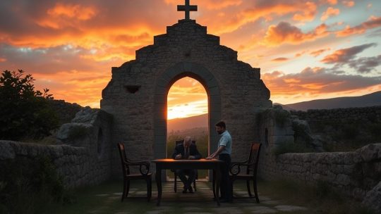 Na encosta de uma vila remota, um antigo mosteiro se erguia como sentinela do vale, com o campanário a tocar as horas e a lembrar o céu. Ali viviam o Abade Silas, sábio de fala mansa; o Irmão Tomé, jovem aprendiz de olhar inquieto; o Guardião Bento...