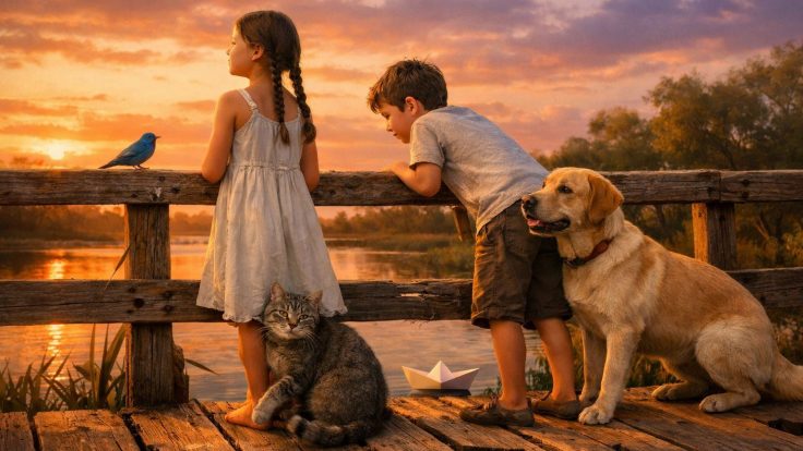 Na encosta de uma pequena aldeia montanhosa, onde as pedras guardavam histórias e o ar cheirava a pinho e lenha, vivia Ana, uma jovem mãe, com seus dois filhos, Miguel e Clara. Eles riam com a pureza de quem descobre o mundo, e, ao cair da tarde, recolhiam água do poço e contavam estrelas. No alto, morava Simeão, um velho sábio; seus passos eram lentos, mas sua palavra era firme, e sempre descia para repartir conselhos como quem oferece pão em manhã fria.